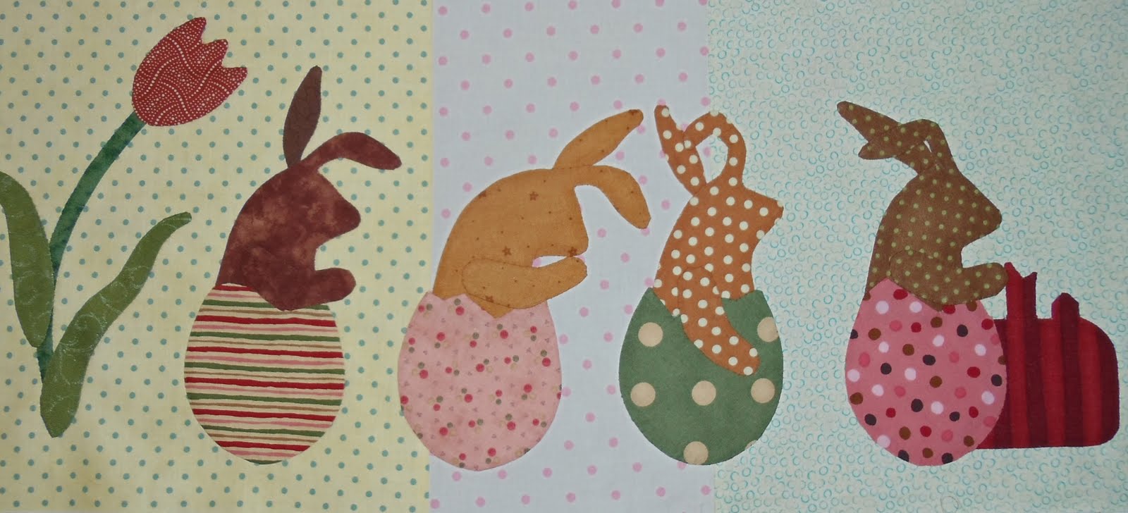 Cottons 'n Wool blog left a comment letting me know that she and Anne Sutton of Bunny Hill--the designer of Rabbits Prefer Chocolate--were sitting in Houston, waiting for quilt market to start, and had enjoyed looking at my take on the quilt. And I've got to say that even though my version probably isn't quite what Anne Sutton had in mind, she's certainly the inspiration behind what I've done with it so far.