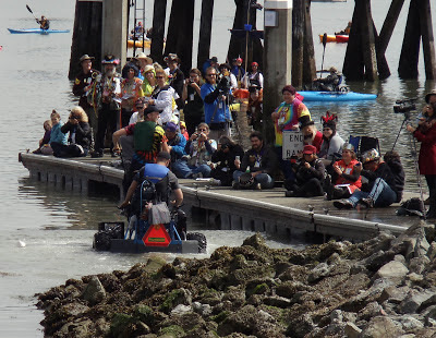 So, where was I? Oh, yes: Day 2 of the Humboldt Kinetic Sculpture Grand Championship; the day on which the sculptures launch into the Humboldt Bay and paddle along with the tide until they get to the Samoa Bridge on the other side of Eureka.
